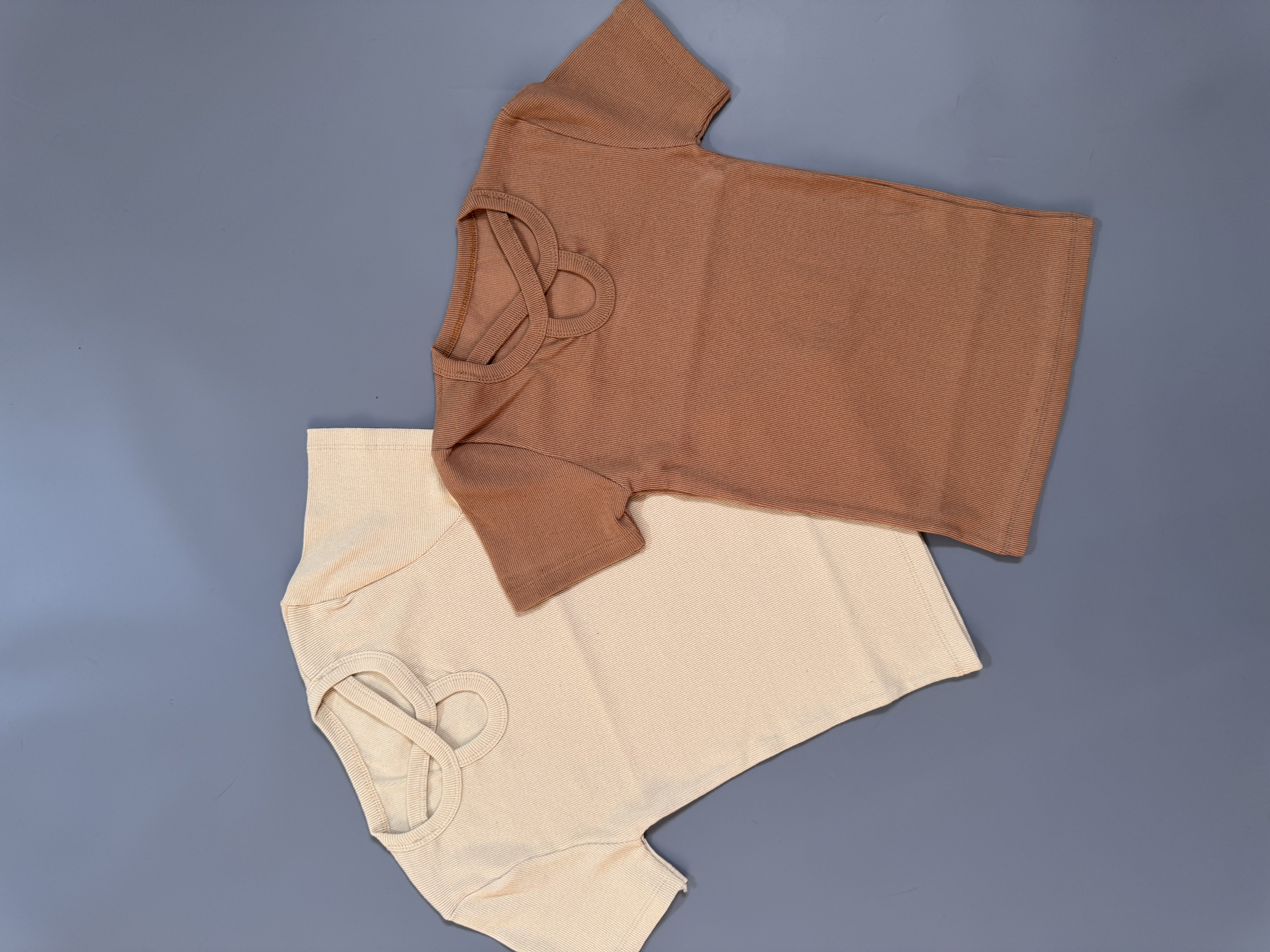 کراپ تیشرت یقه ضربدری جنسش کبریتی پنبه اس (کشسانی بالایی داره) فری سایز مناسب ۳۶ تا ۴۲ قدش ۵۸ سانتیمتره