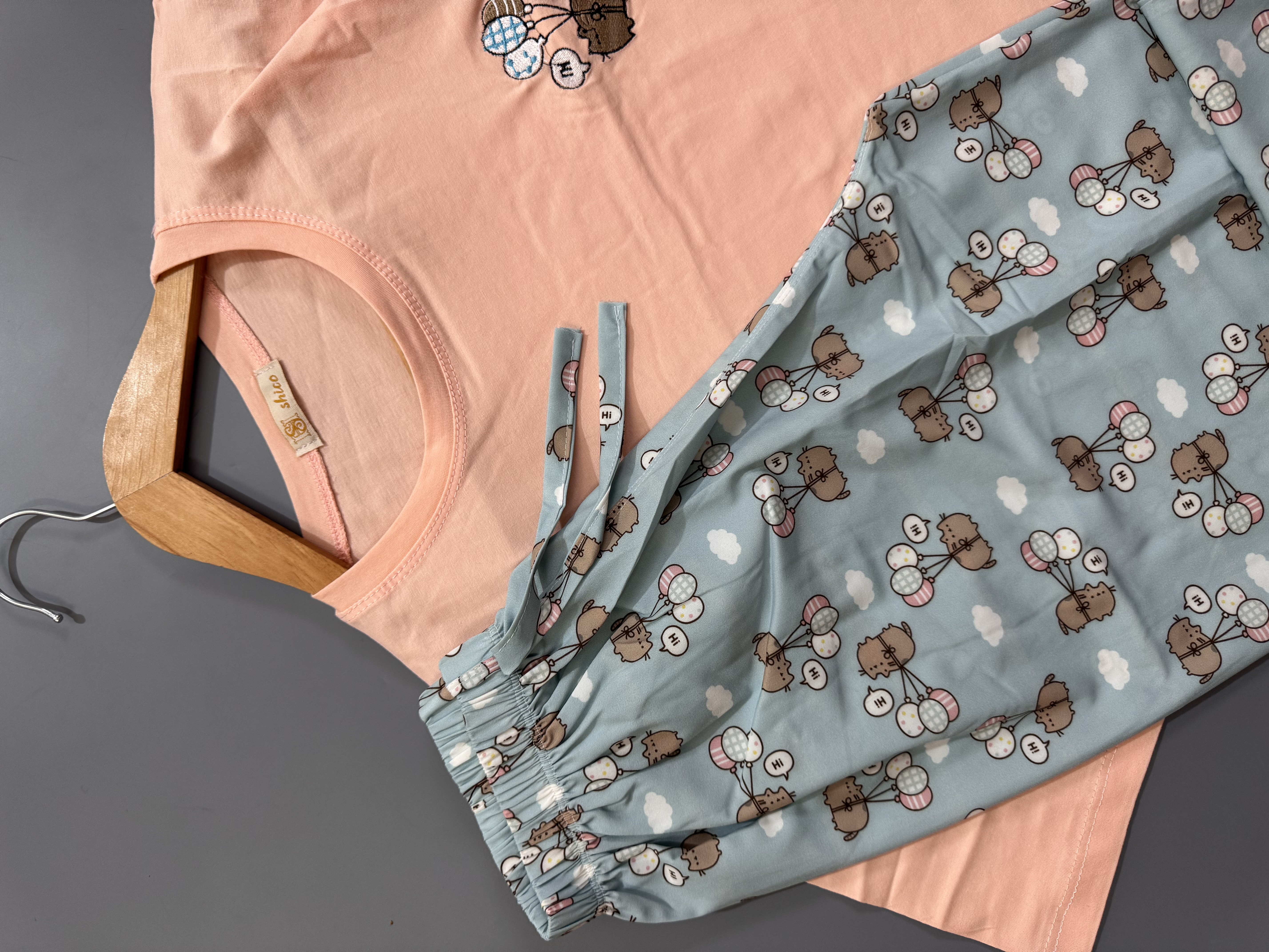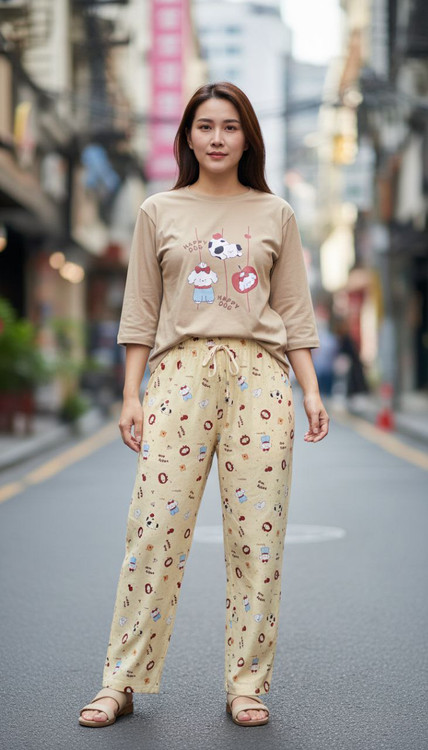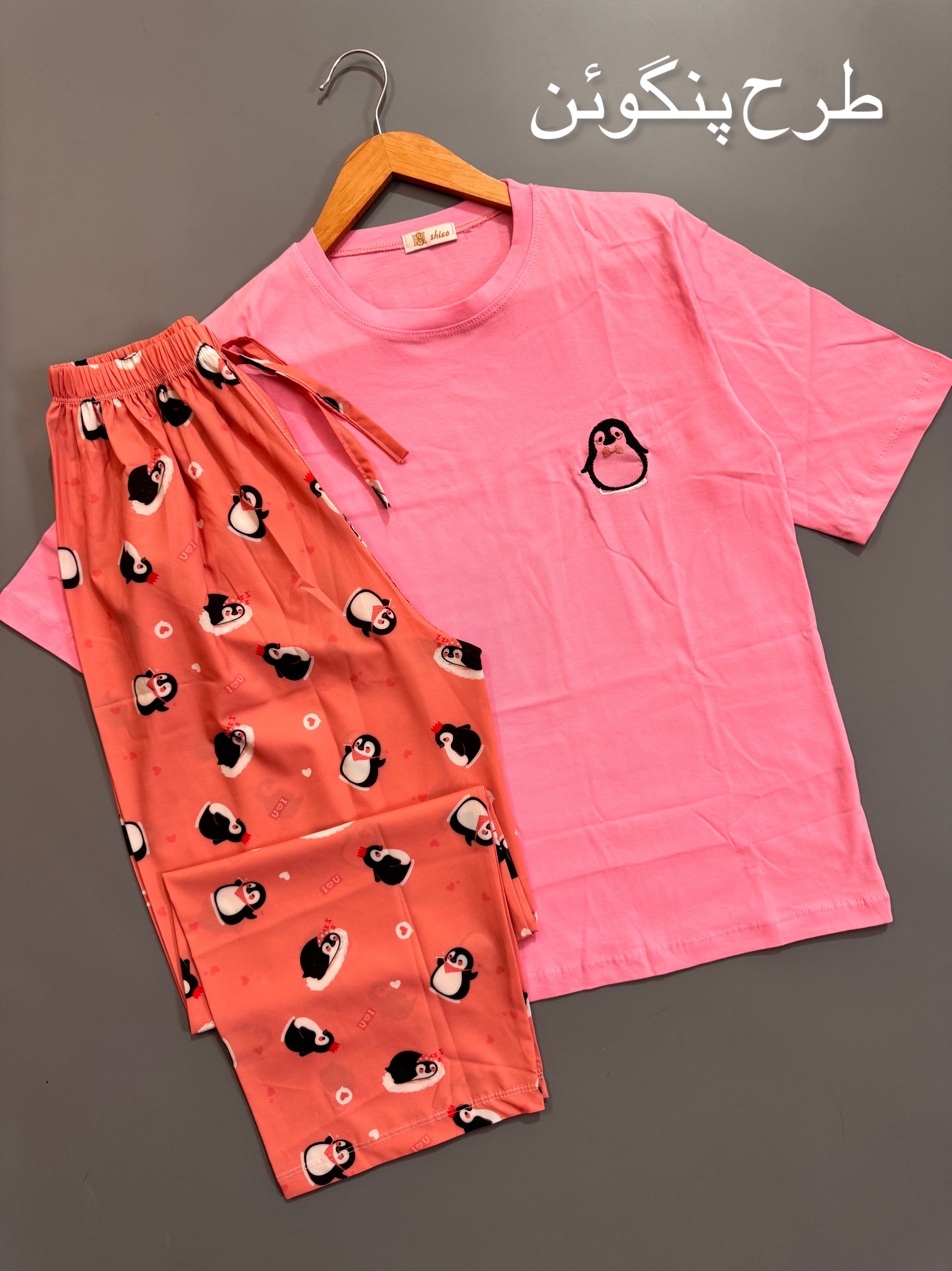 ست تیشرت باکسی آستین سه ربع و شلوار بگ