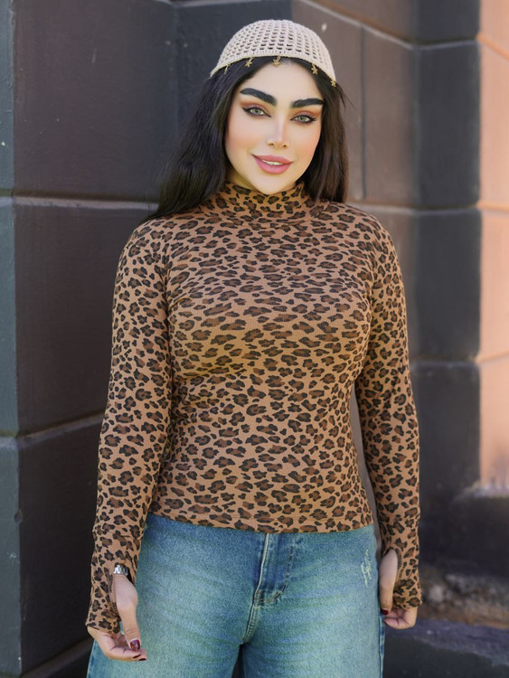 بلوز یقه اسکی پلنگی فری سایز