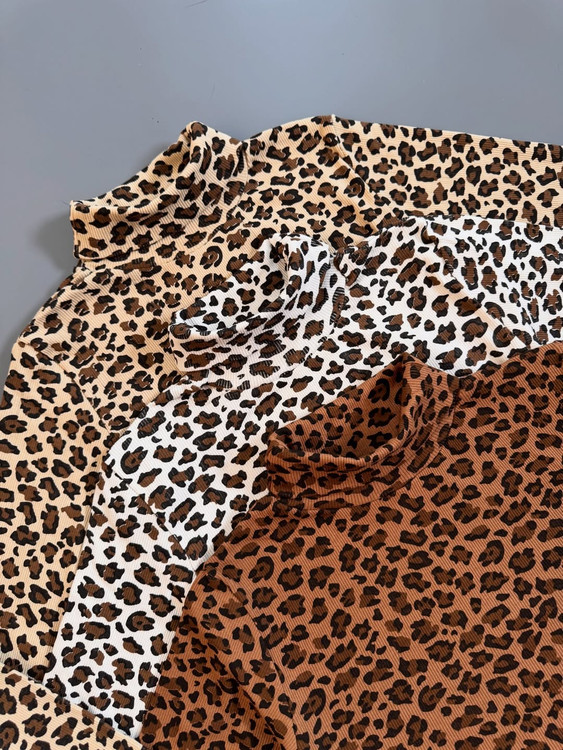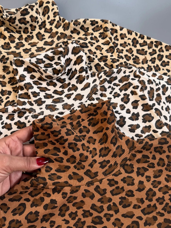 این بلوز یقه اسکی پلنگی از جنس کبریتی پنبه تولید شده فری سایزه مناسب سایز ۳۶ تا ۴۲ (کشسانی دارد تا سایز ۴۴ را نیز پوشش دهد) در سه رنگ مختلف و قد ۶۰ سانت موجود است.